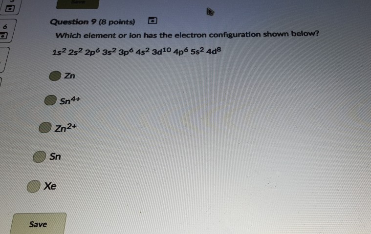 Solved Question 9 8 Points 6 Which Element Or Ion Has The Chegg Com